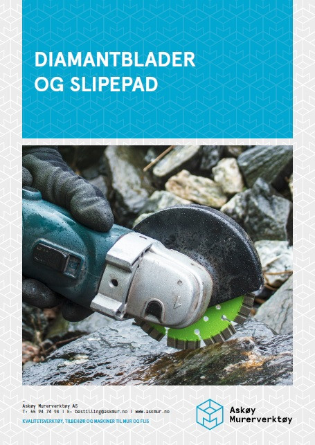 Brosjyren viser også vårt nye sortiment av Strong diamant slipepad for å slipe og polere flis, granitt, stein og betong. Disse brukes på slipemaskin eller vinkelsliper med max hastighet 4000 O/min. Med borrelås for feste på holder.