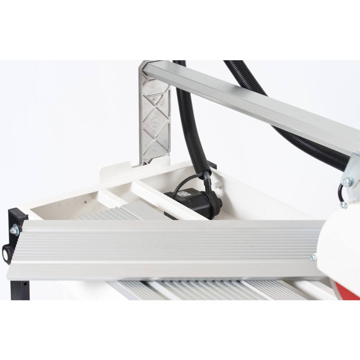 Sagen har diamantblad som er montert direkte på motor, justerbar linjal og avtakbart land, for enkel rengjøring. Kraftig vannpumpe og jetdyser sørger for optimal kjøling av diamantbladet, som kan tiltes fra 90 – 45 grader for jollykutt.