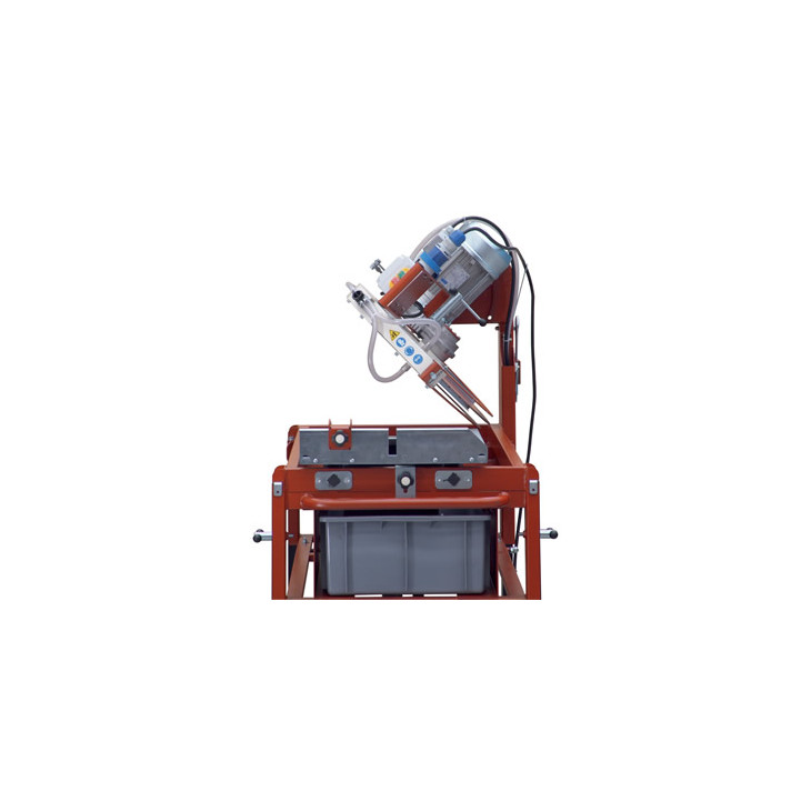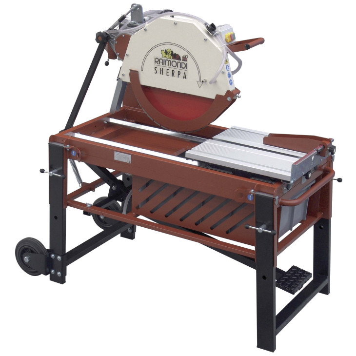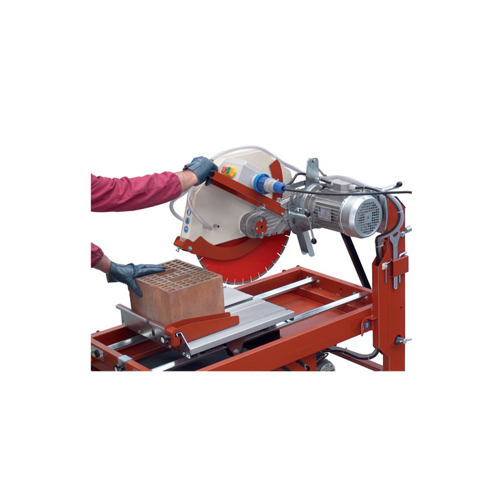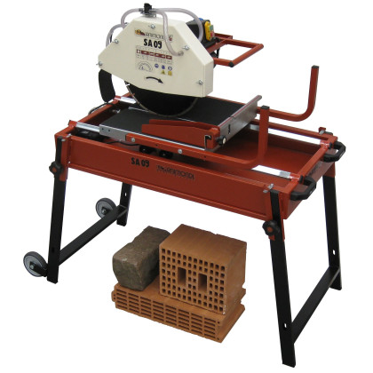 Svært solid sag med rullebord for tykkere materialer som murstein, naturstein, betongstein osv. Motoren kan tiltes for jolly