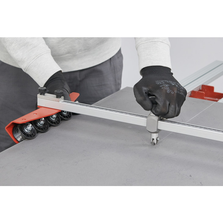 T-CUT er utstyrt med 5 hjul som sikrer et nøyaktig kutt i hele lengden av flisen.