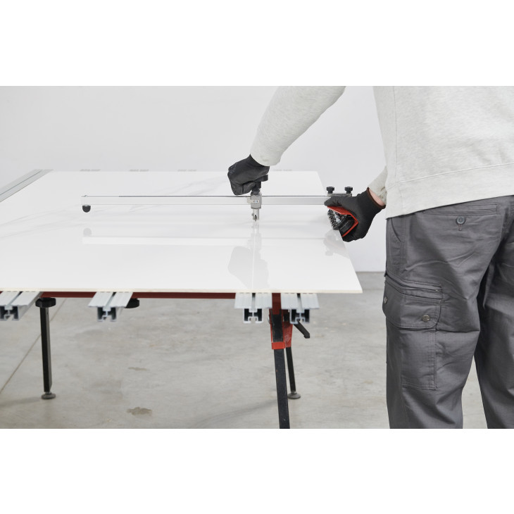 Kuttebredde fra 40 mm til 600 mm ved å holde T-CUT langs kanten på flisen.