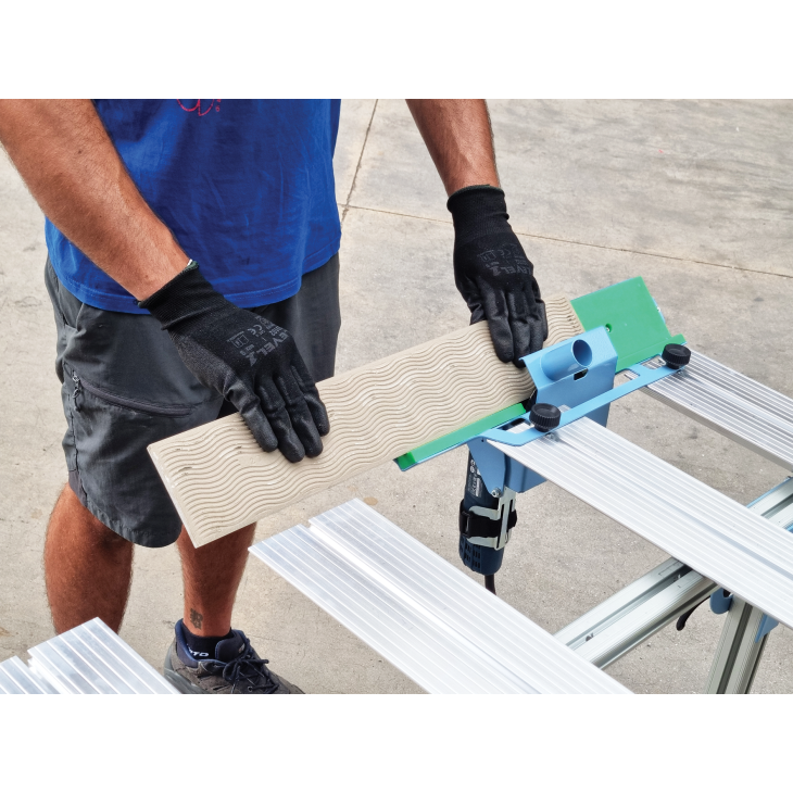 Ved å føre apparatet langs flisen/platen (steintøy, marmor, granitt osv.) sikrer det en jevn bearbeiding langs hele kanten, og følger nøyaktig kurvene på flisen. Noe som ikke ville vært mulig ved bruk av en vanlig flisesag.
