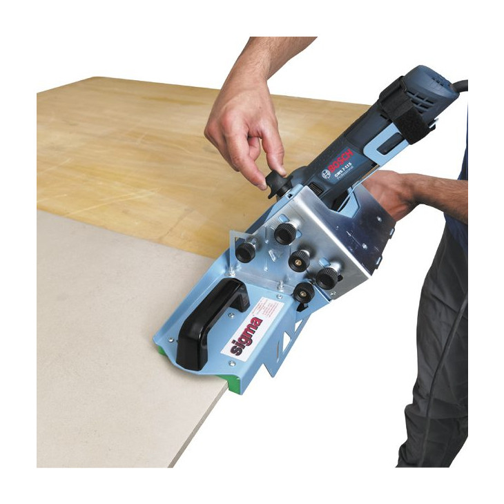 Monteres på en bordplate ved å skru det fast eller det kan festes direkte på Sigma arbeidsbord uten bruk av verktøy. Da står apparatet fast montert og man fører flisen gjennom.