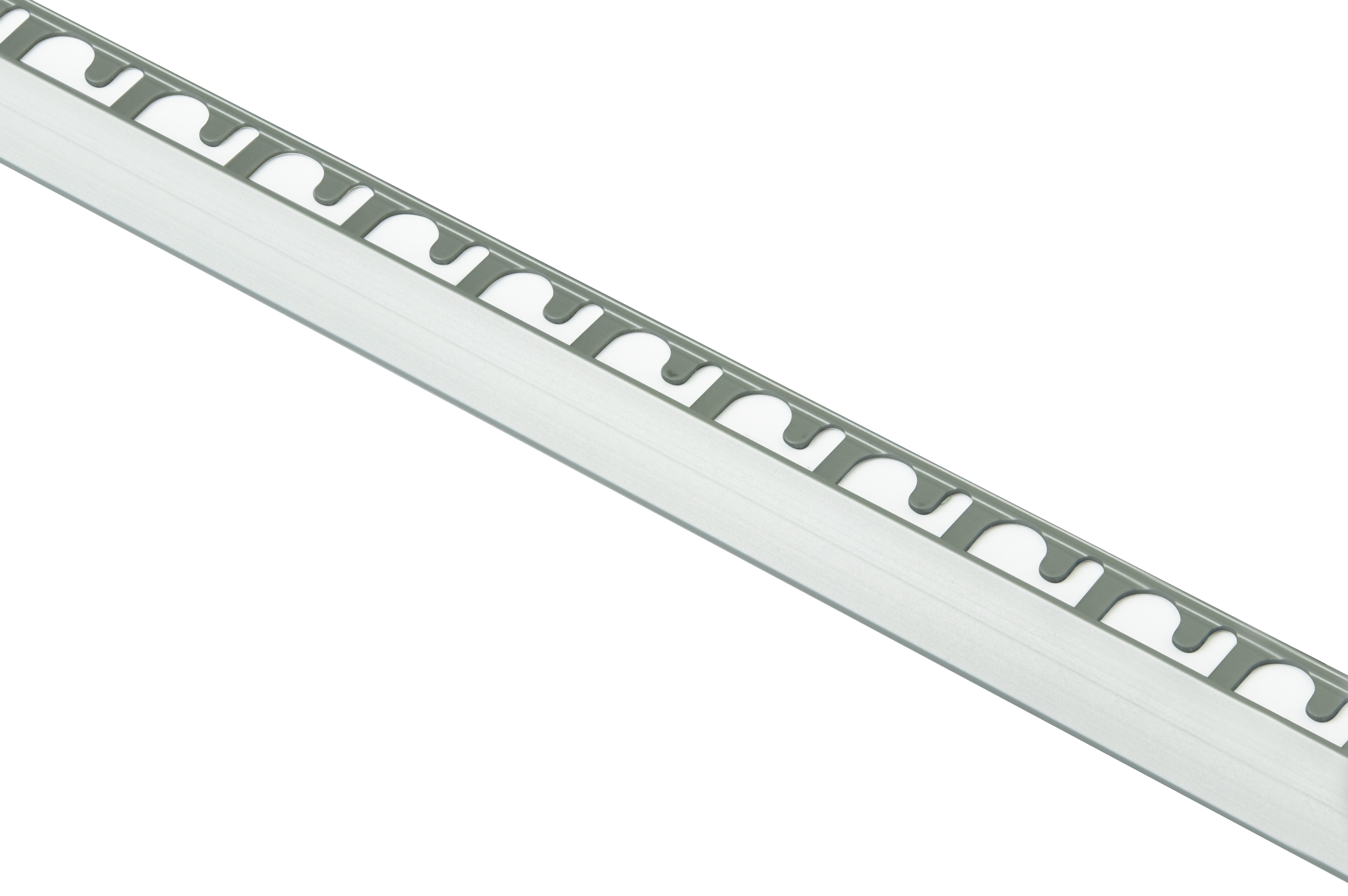 Hjørnelist i eloksert aluminium med trekantet profil. Blank overflate. For en eksklusiv finish. Bruksområde; På utvendige hjørner, rundt vindu, benk, toalettkasse og andre innredningsdetaljer. Beskytter flisene og gir et pent hjørne uten skarpe kanter. Kan også brukes som dekorlist eller avslutning mot andre overflater.