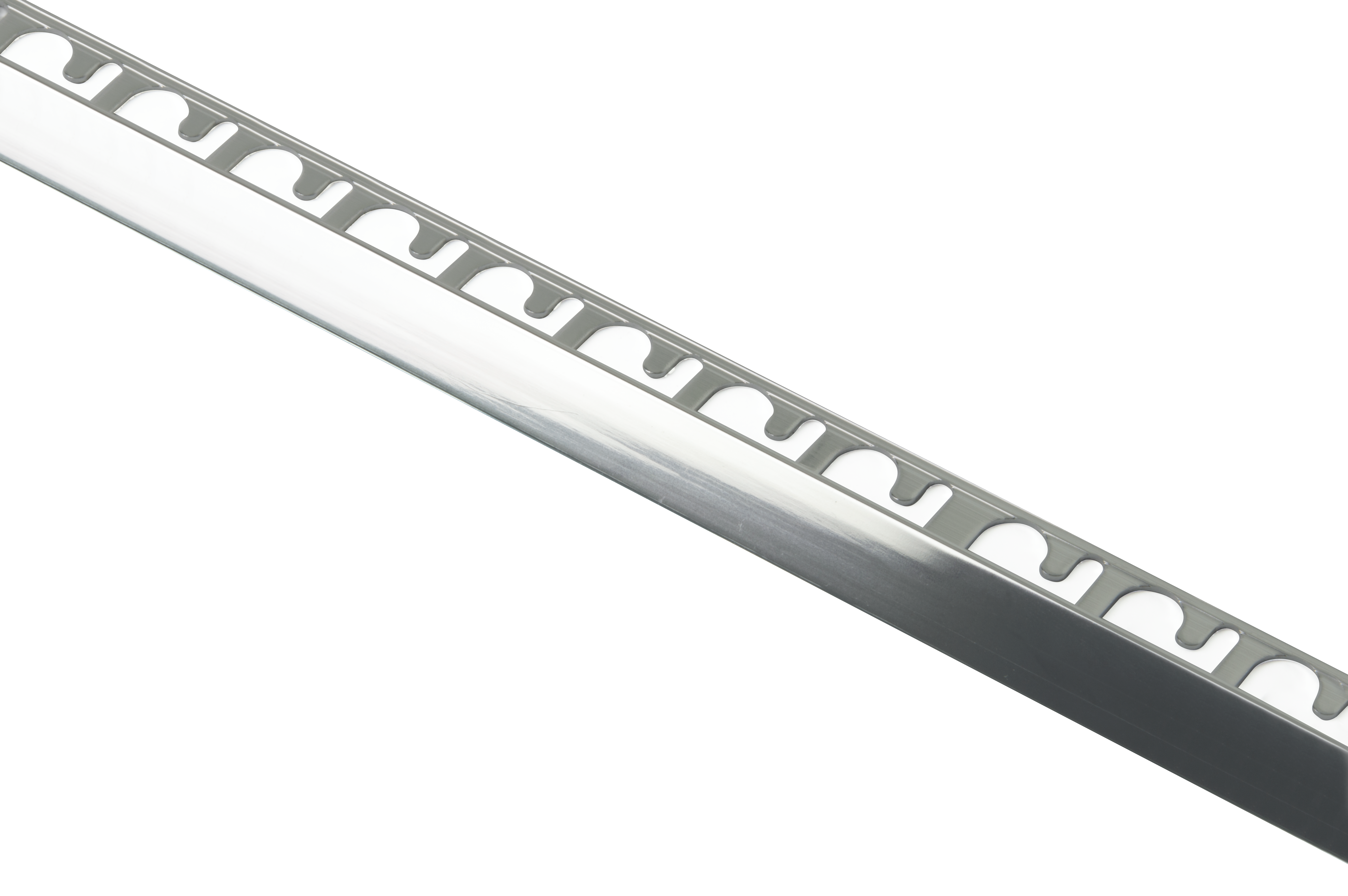 Hjørnelist i blank krom aluminium med trekantet profil. Blank overflate. For en eksklusiv finish. Bruksområde; På utvendige hjørner, rundt vindu, benk, toalettkasse og andre innredningsdetaljer. Beskytter flisene og gir et pent hjørne uten skarpe kanter. Kan også brukes som dekorlist eller avslutning mot andre overflater.