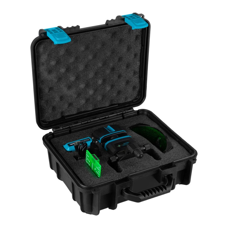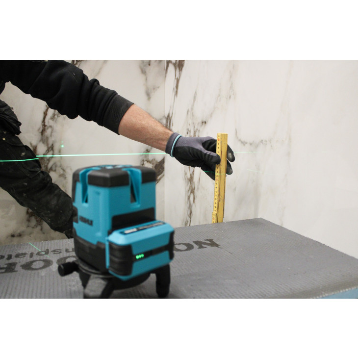 5 linjer grønn stråle for optimal synlighet. Leveres i kompakt koffert med plass for alt tilbehør. Lyd- og lyssignal ved feil.