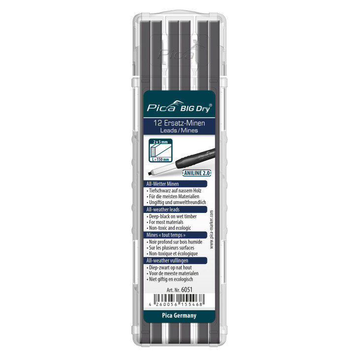 Pica Big Dry Refill, 12 stk graphite grå for våtmerking