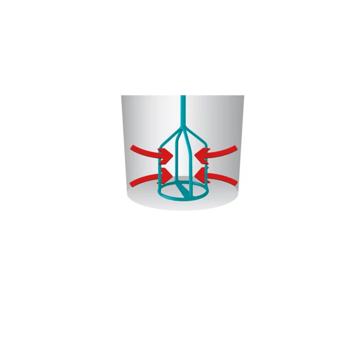 Visp med høye skjærkrefter, forhindrer klumping, ideell for sementbaserte lim og løpende fyllstoffer; Bra for epoksyharpiksblandinger, da det er få luftlommer. Lett å rengjøre.