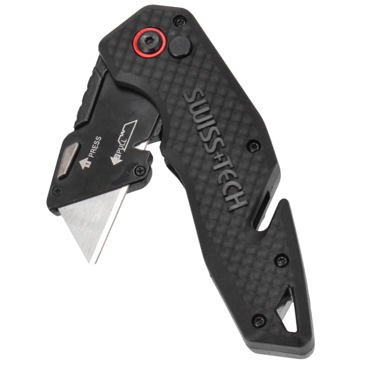 Kniven har et godt og fingerformet grep. Håndtaket er laget av nylonfiber som gir en høy styrke, med en utrolig letthet. Med en tommelplate på overkanten av kniven kan du jobbe med høyt press på kniven. Kniven lukkes enkelt med et trykk på siden av kniven. Derfor kan du oppbevare kniven trygt – uansett om den ligger i verktøykassen eller i lommen. Som en ekstra bonus har foldekniven en belteklips slik at du alltid kan ha kniven for hånden. 10 ekstra blad er inkludert. Kniven har en innebygget snorkutter i håndtaket og et spor for stripping av ledningen.