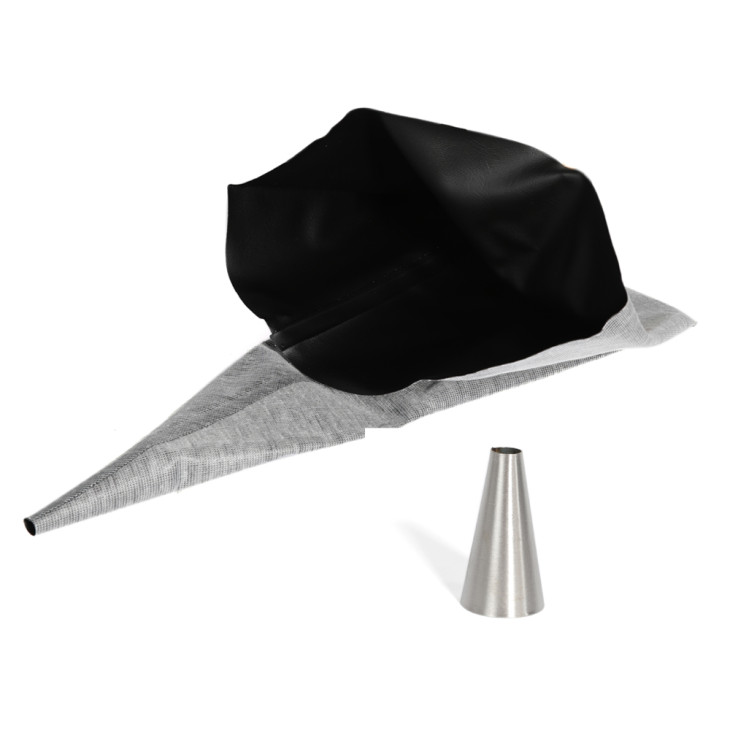 Fugepose i slitesterkt materiale med solid ståltupp for nøyaktig påføring av fugemasse, mørtel eller lim.