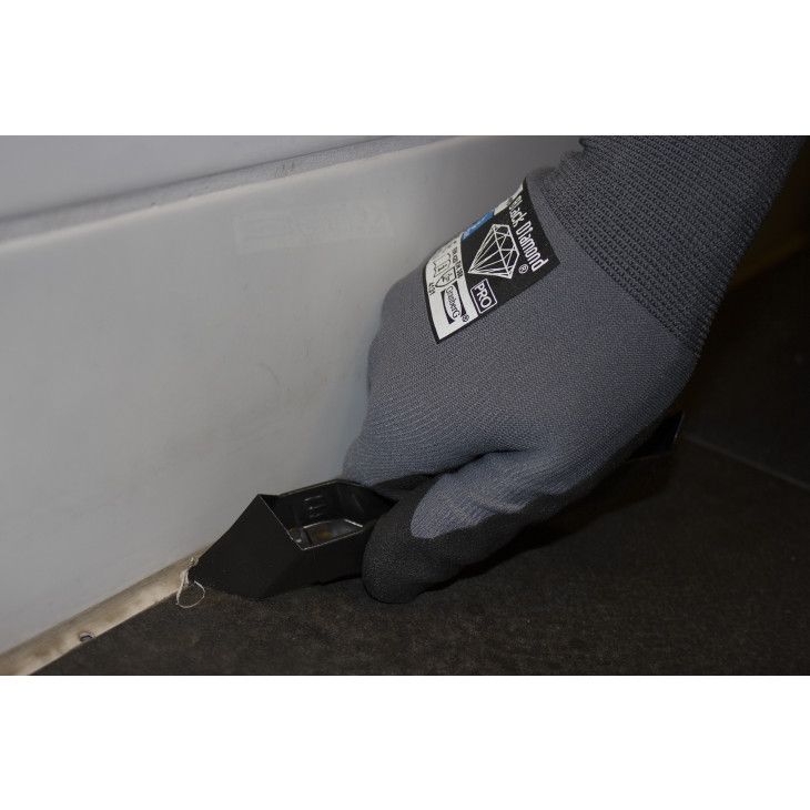 Knivens vinkel gjør at det med normal flistykkelse ikke skal være fare for å skade eventuell membran under flisene, men utvis forsiktighet i slike tilfeller.