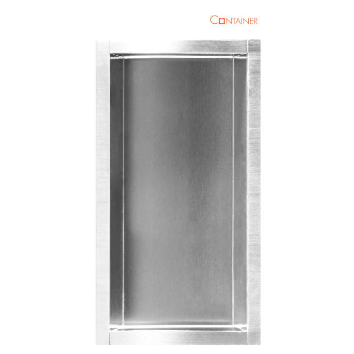 Plassbesparende løsninger Container Veggnisjer tilbyr unike plassbesparende løsninger for baderommet, med praktisk oppbevaring av sjampo, dusjsåpe og andre baderomsartikler. Produktene er produsert med rustfritt stål av høy kvalitet, og leveres i forskjellige størrelser. Container Box Veggnisjer monteres raskt og enkelt, og forsegling og flislegging er ukomplisert. Designet er enkelt og stilfullt, og fungerer i ethvert baderom. Alle produktene oppfyller selvsagt ESS sin høye kvalitetsstandard.