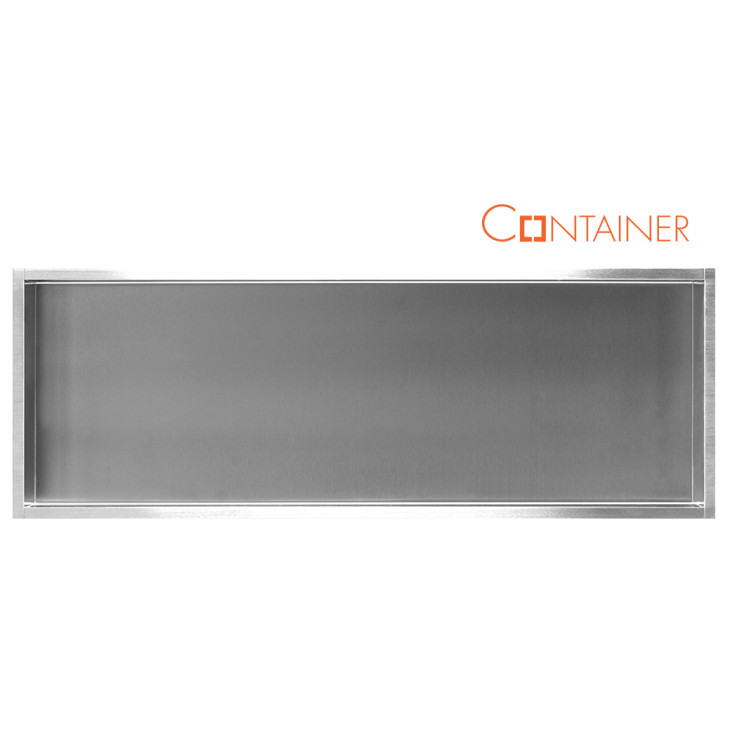Plassbesparende løsninger Container Veggnisjer tilbyr unike plassbesparende løsninger for baderommet, med praktisk oppbevaring av sjampo, dusjsåpe og andre baderomsartikler. Produktene er produsert med rustfritt stål av høy kvalitet, og leveres i forskjellige størrelser. Container Box Veggnisjer monteres raskt og enkelt, og forsegling og flislegging er ukomplisert. Designet er enkelt og stilfullt, og fungerer i ethvert baderom. Alle produktene oppfyller selvsagt ESS sin høye kvalitetsstandard.