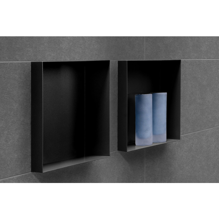 Container Veggnisjer tilbyr unike plassbesparende løsninger for baderommet, med praktisk oppbevaring av sjampo, dusjsåpe og andre baderomsartikler. Produktene er produsert med rustfritt stål av høy kvalitet, og leveres i forskjellige størrelser. Container Box Veggnisjer monteres raskt og enkelt, og forsegling og flislegging er ukomplisert. Designet er enkelt og stilfullt, og fungerer i ethvert baderom. Alle produktene oppfyller selvsagt ESS sin høye kvalitetsstandard.