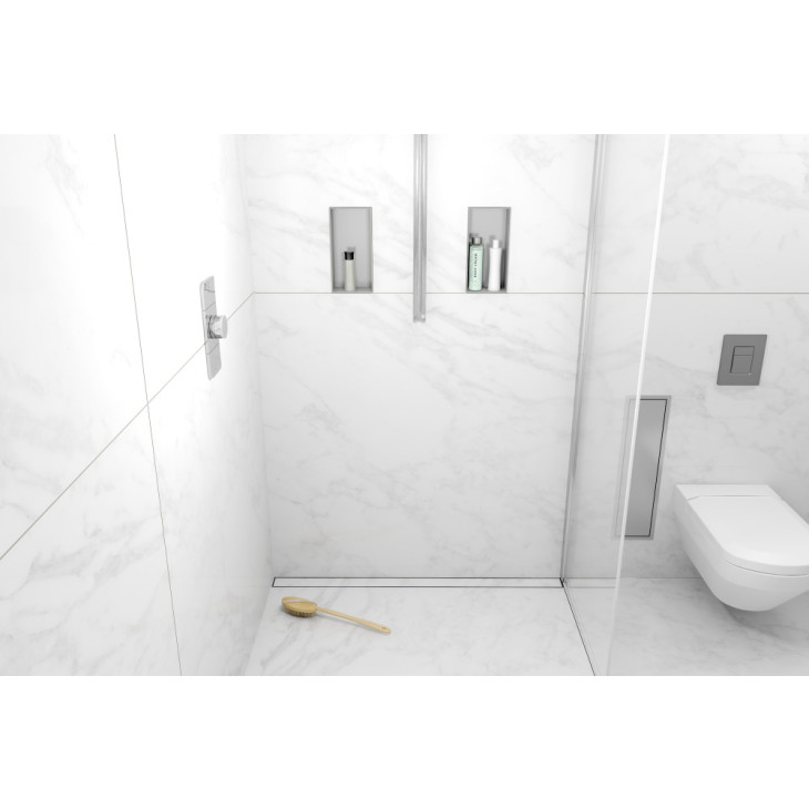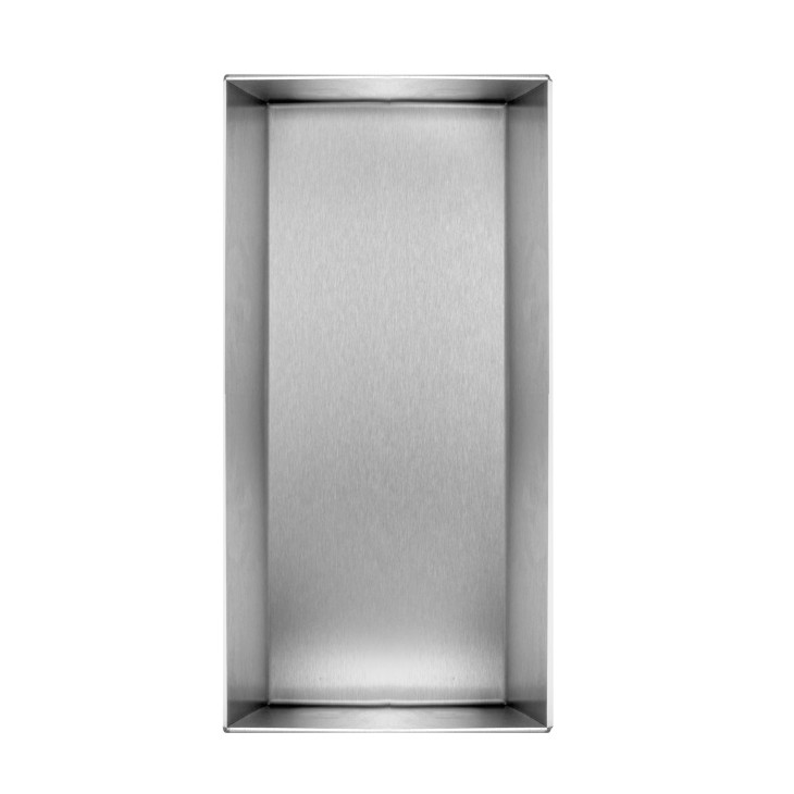 Container Veggnisjer tilbyr unike plassbesparende løsninger for baderommet, med praktisk oppbevaring av sjampo, dusjsåpe og andre baderomsartikler. Produktene er produsert med rustfritt stål av høy kvalitet, og leveres i forskjellige størrelser. Container Box Veggnisjer monteres raskt og enkelt, og forsegling og flislegging er ukomplisert. Designet er enkelt og stilfullt, og fungerer i ethvert baderom. Alle produktene oppfyller selvsagt ESS sin høye kvalitetsstandard.